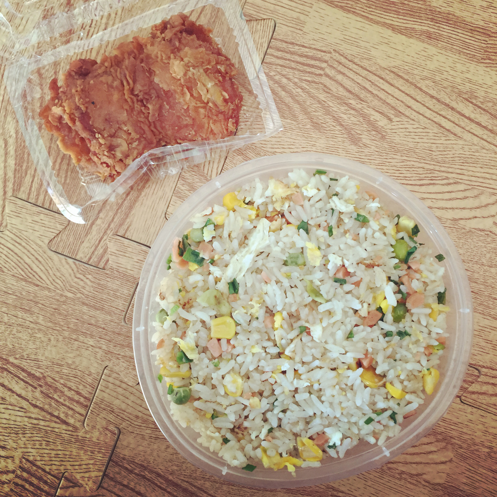 今天的午餐非一般的丰盛!!舍友是广州人 她说思念车仔面好久于是买了一箱屯在宿舍哈哈哈!!还去食堂买了鸡排和西兰花还有蛋挞...