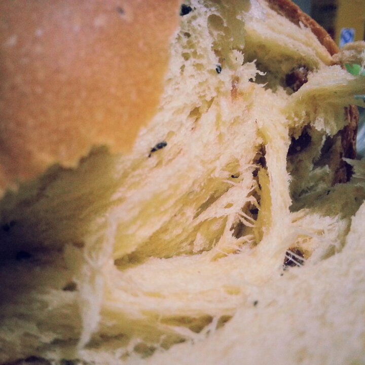 双十一新败的面包机,看看烤色,这是底部搅拌刀位置的烤色。。。很棒呢。。