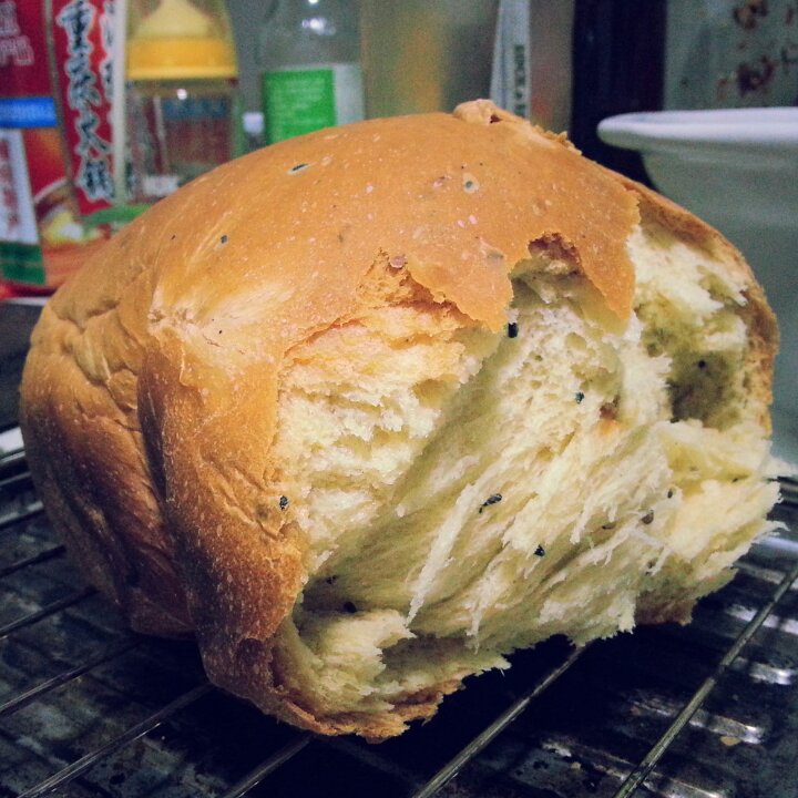 双十一新败的面包机,真好玩,晚上走前看着和面,回来到家,已经烤好了,...