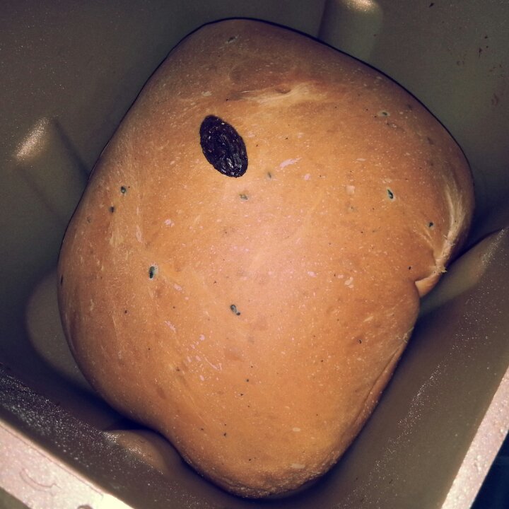 双十一新败的面包机,走前看着和面,真好玩,葡萄干都撒歪了,我直接放在上...