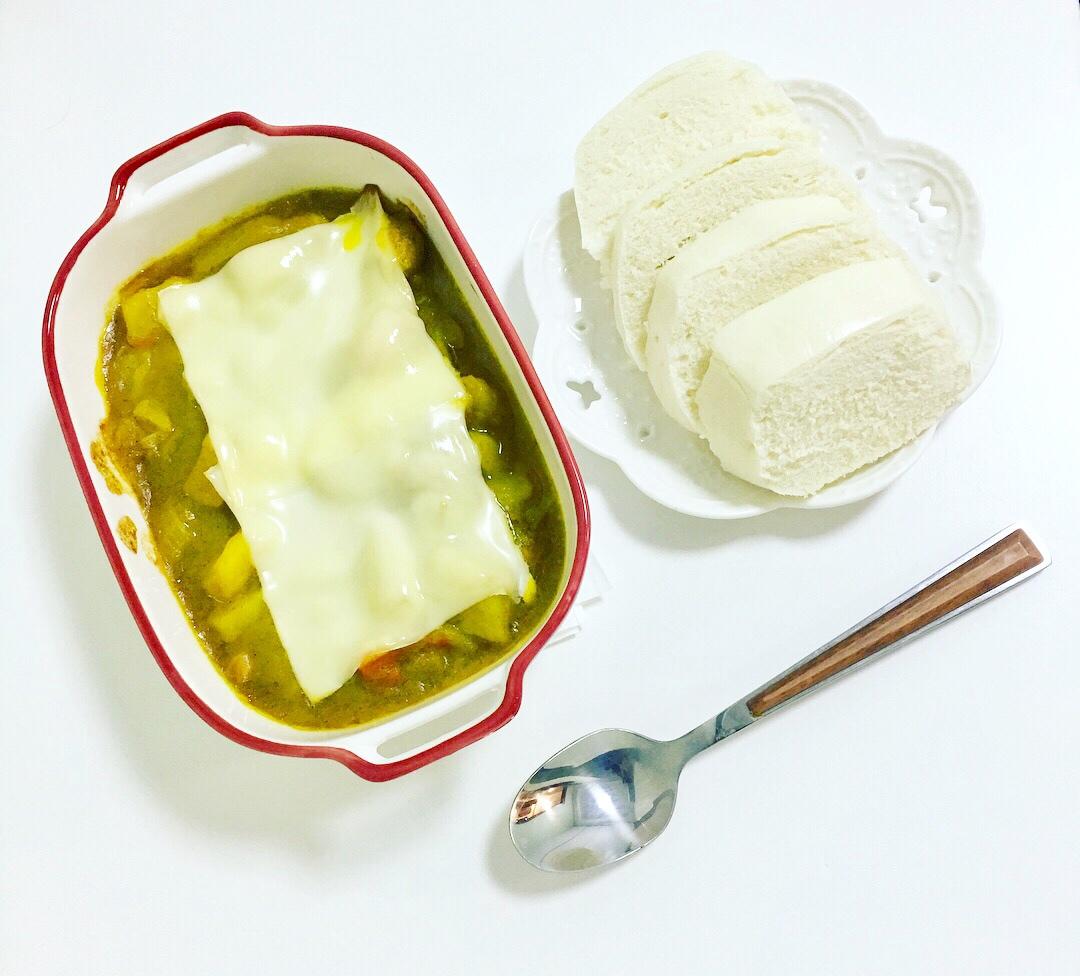 👩🏻🍳芝士片焗咖喱+馒头片