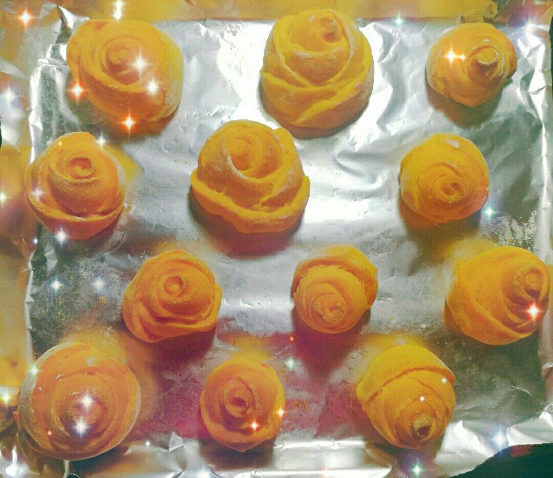 #南瓜玫瑰花卷#