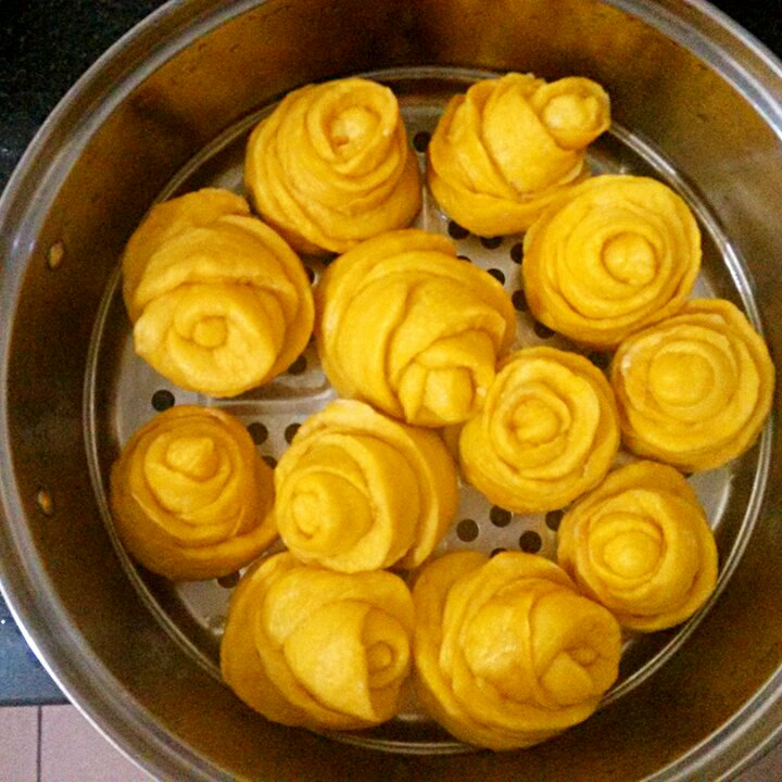 南瓜玫瑰花卷,做明天的早餐
