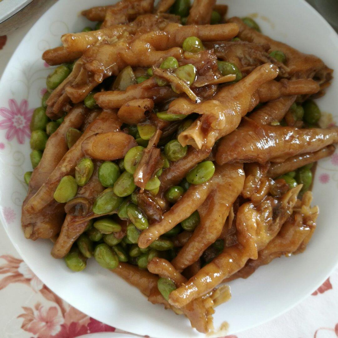 我的午餐:毛豆烧鸡爪,凉拌凉粉,炝炒空心菜,番茄蛋花汤☺☺☺