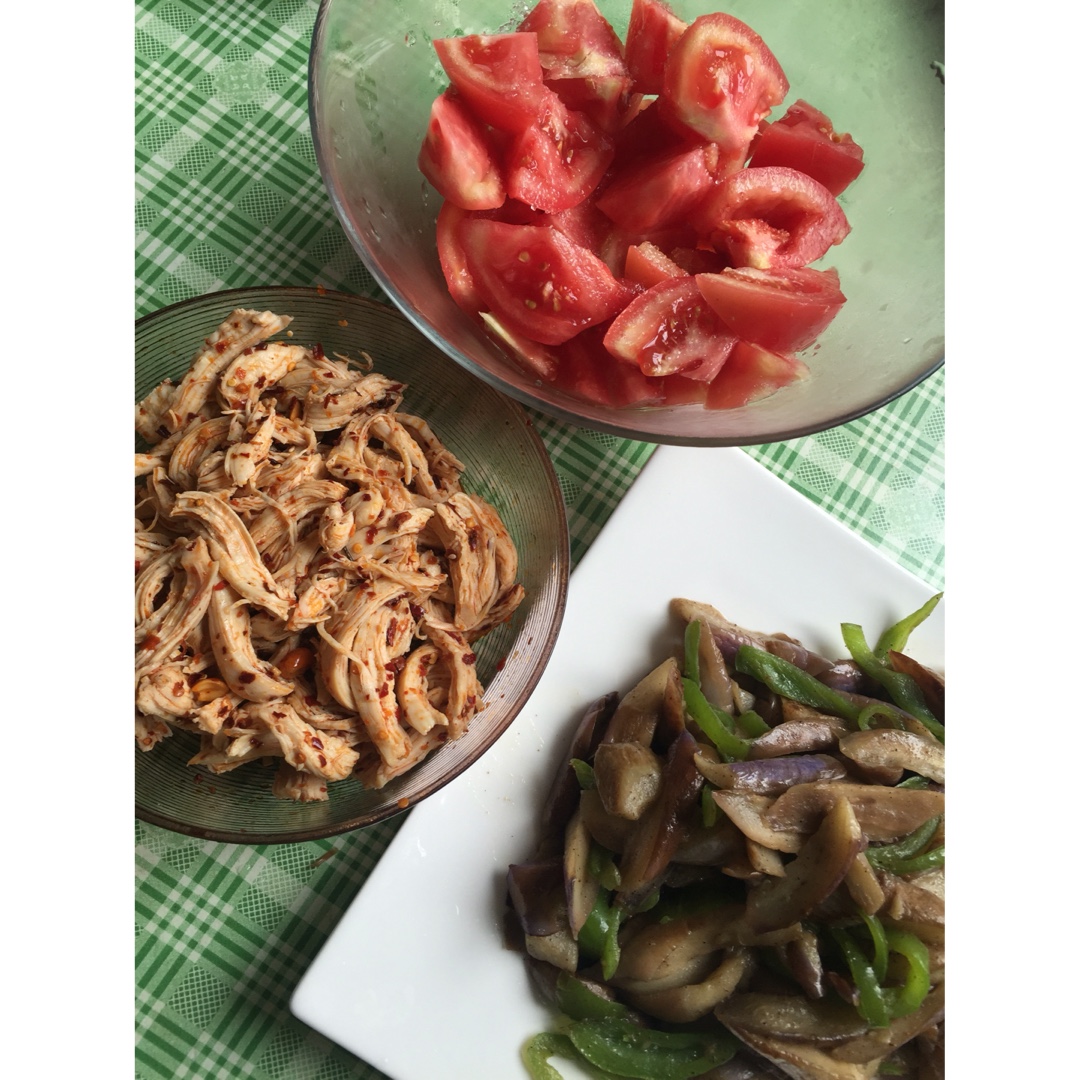 凉拌西红柿,麻辣鸡丝,青椒茄子……