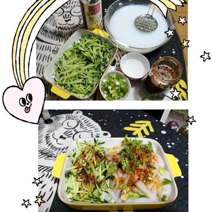 豌豆凉粉,豌豆淀粉 黄瓜 香菜 醋 生抽 辣椒油