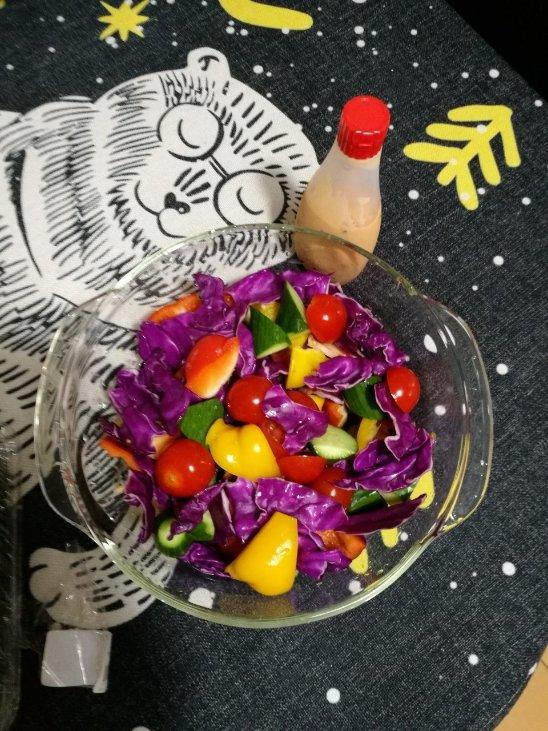 蔬菜沙拉 彩椒 小番茄 紫甘蓝 水果黄瓜 千岛酱