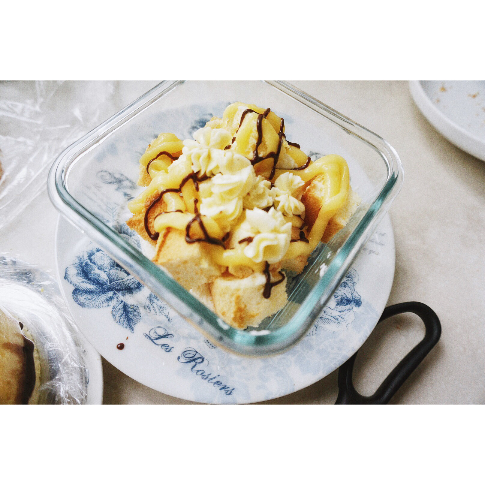 石小团的小山进柠檬慕斯的方子,烤了柠檬戚风做底,多出来的柠檬凝乳,甘纳许还有淡奶油堆在一起也hin好吃~ #午餐•201...