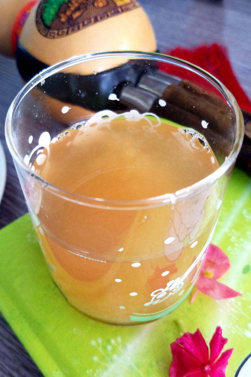 百香果饮,今天第一次吃这个水果,没想到冲水喝如果美味,加了一点蜂蜜真好喝,