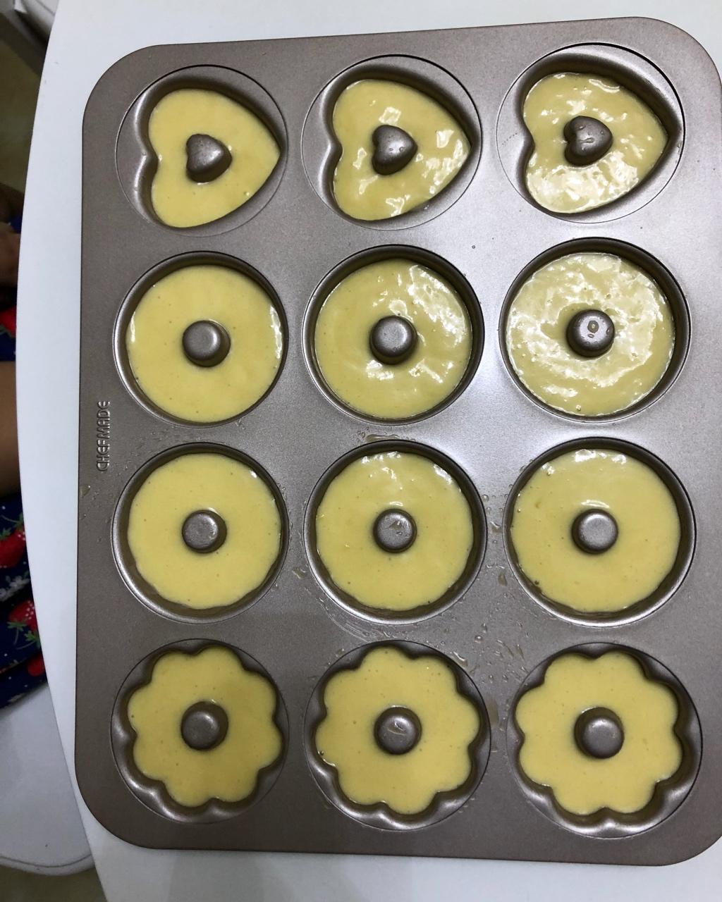 第一次做蛋糕甜甜圈,貌似很成功,俩小吃货分分钟扫掉一大半