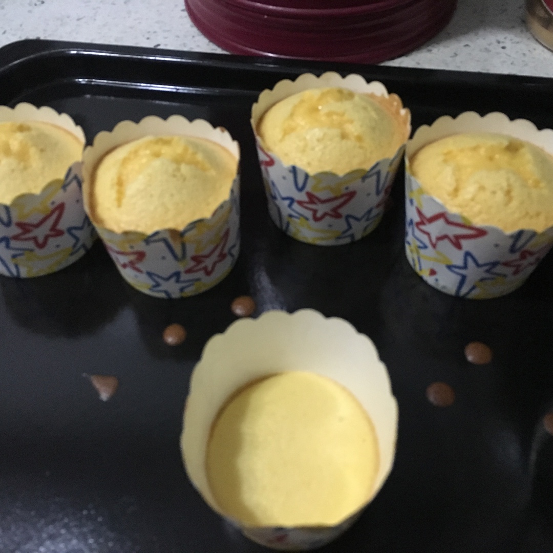 蛋白打发失败,混进了蛋黄,因此蛋糕口感略硬,且晾凉后回缩严重。另外,烤箱时间要加长10分钟