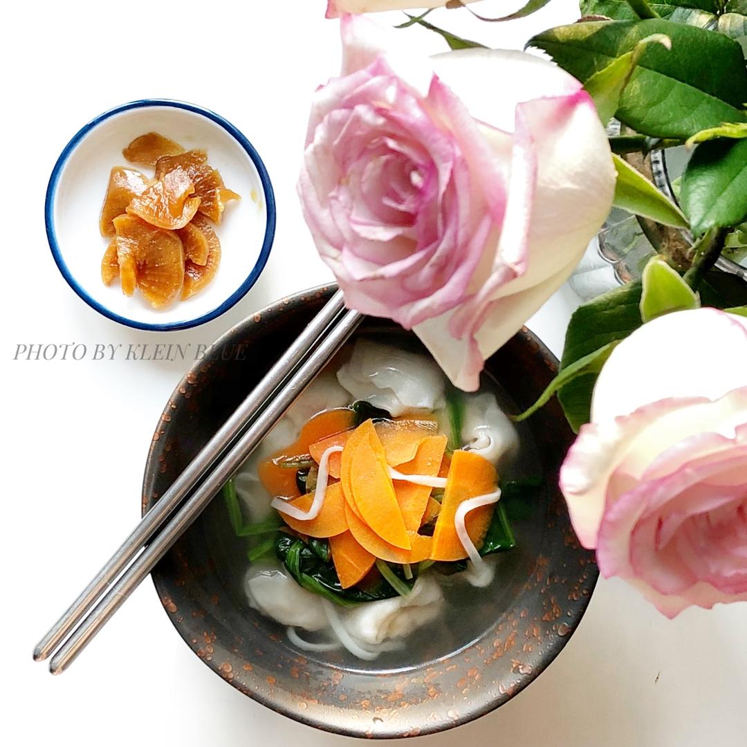 给墩下了他想吃的馄饨面,我只能挑几根面条吃吃~