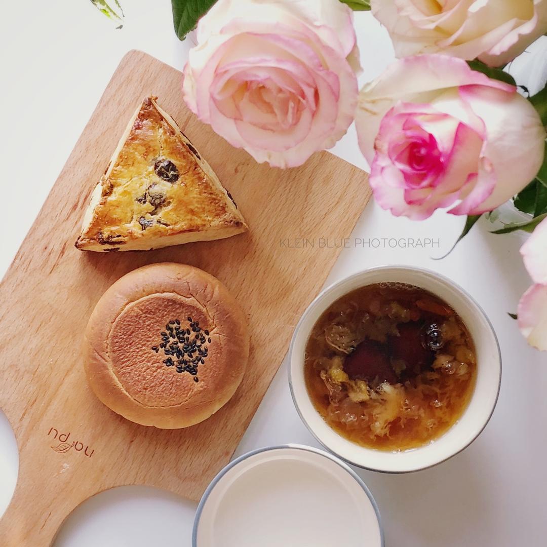 囤货冷冻的司康和红豆饼,头天晚上自然解冻,早上烤一下~