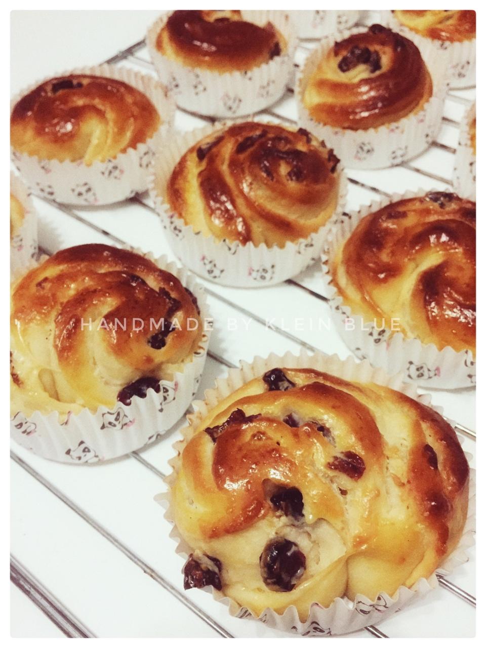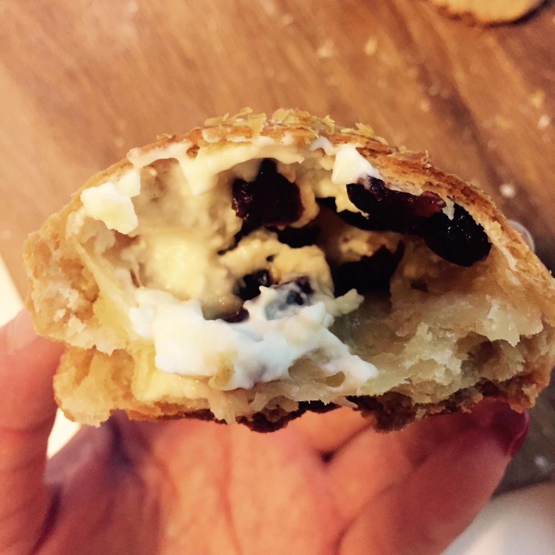 馅料换成了儿子喜欢的芒果奶酪+蔓越莓~这款的整形方法似乎不太适合这样的馅料。可以试试整个面团擀平涂抹馅料卷起再切开的方法...