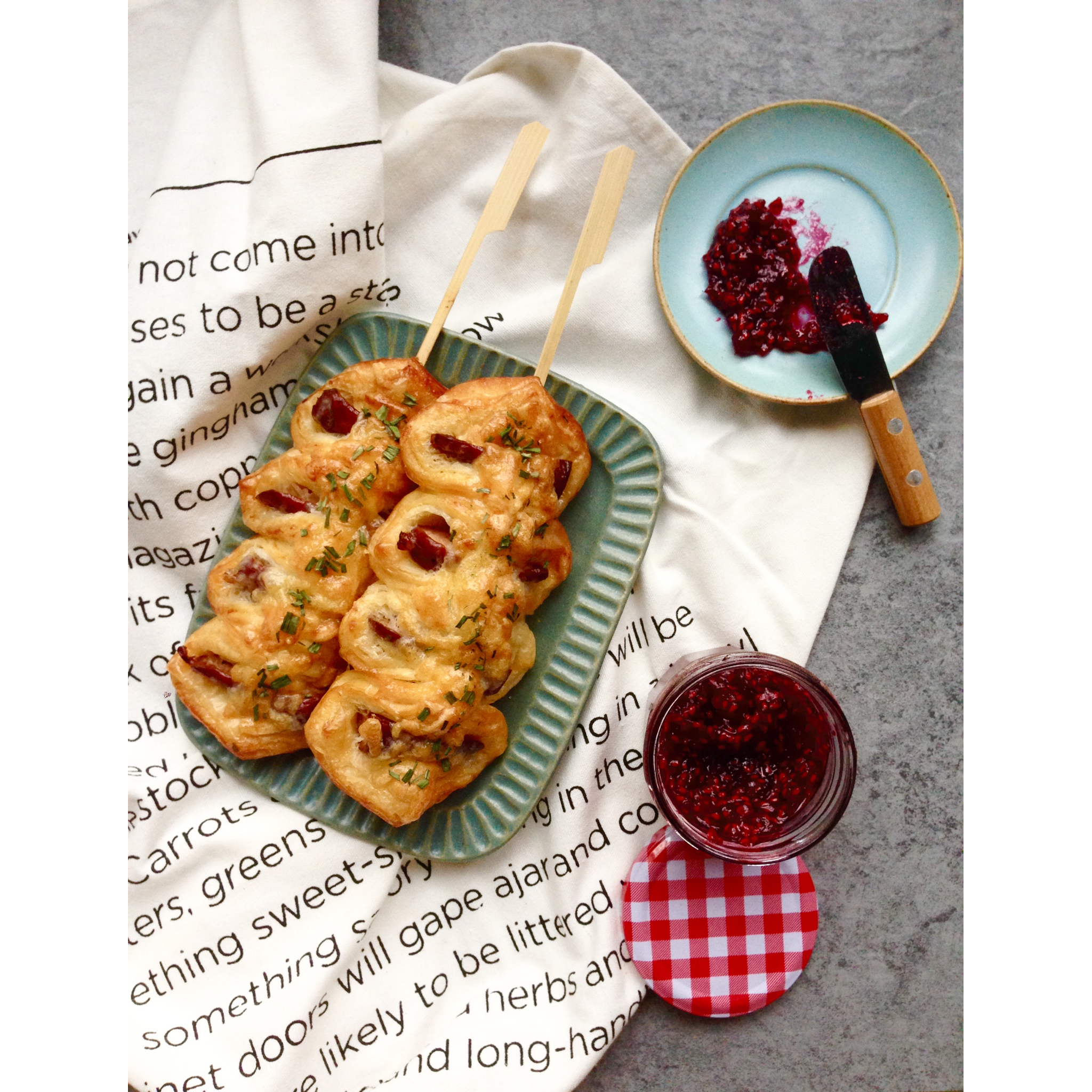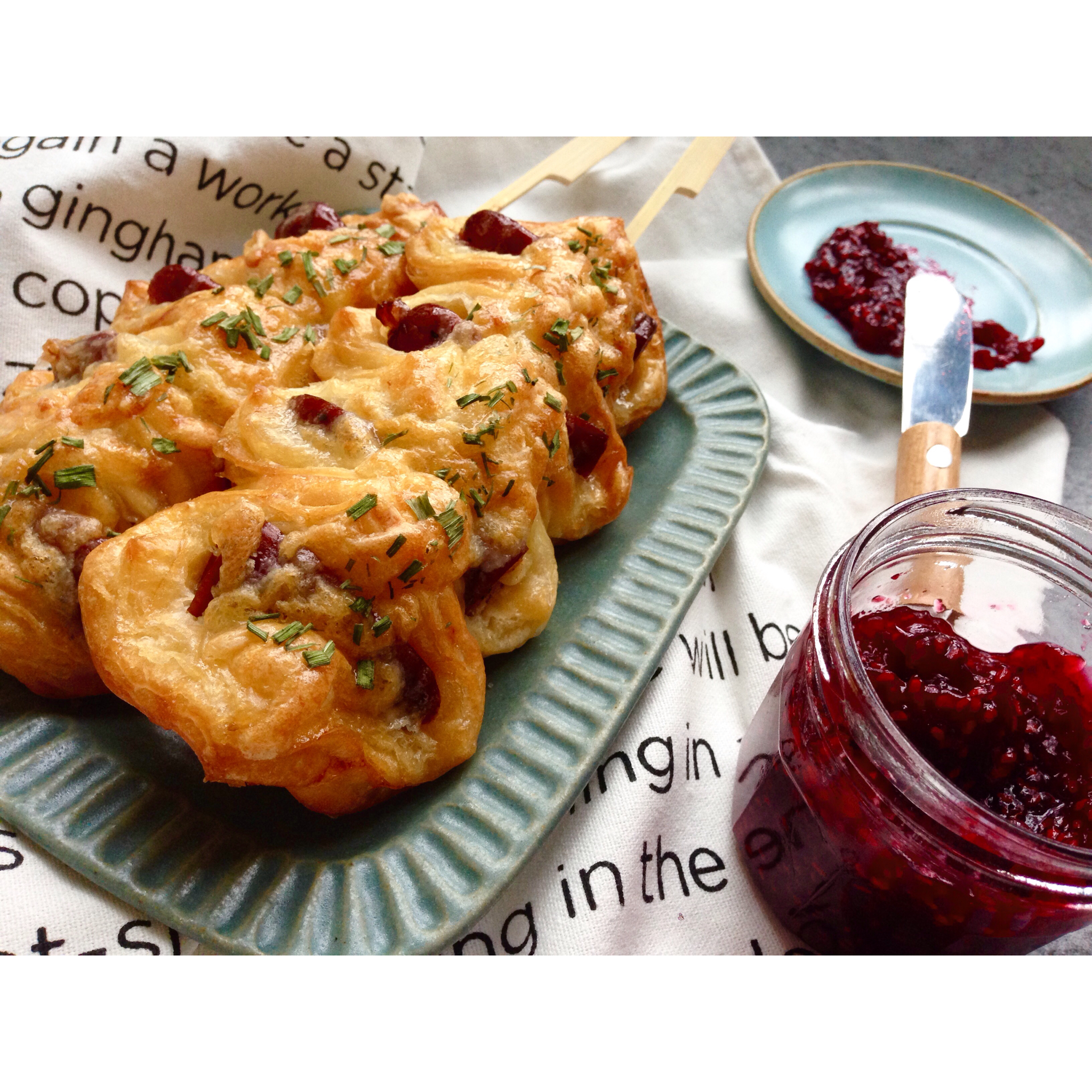 面包买的,果酱自己做的~
