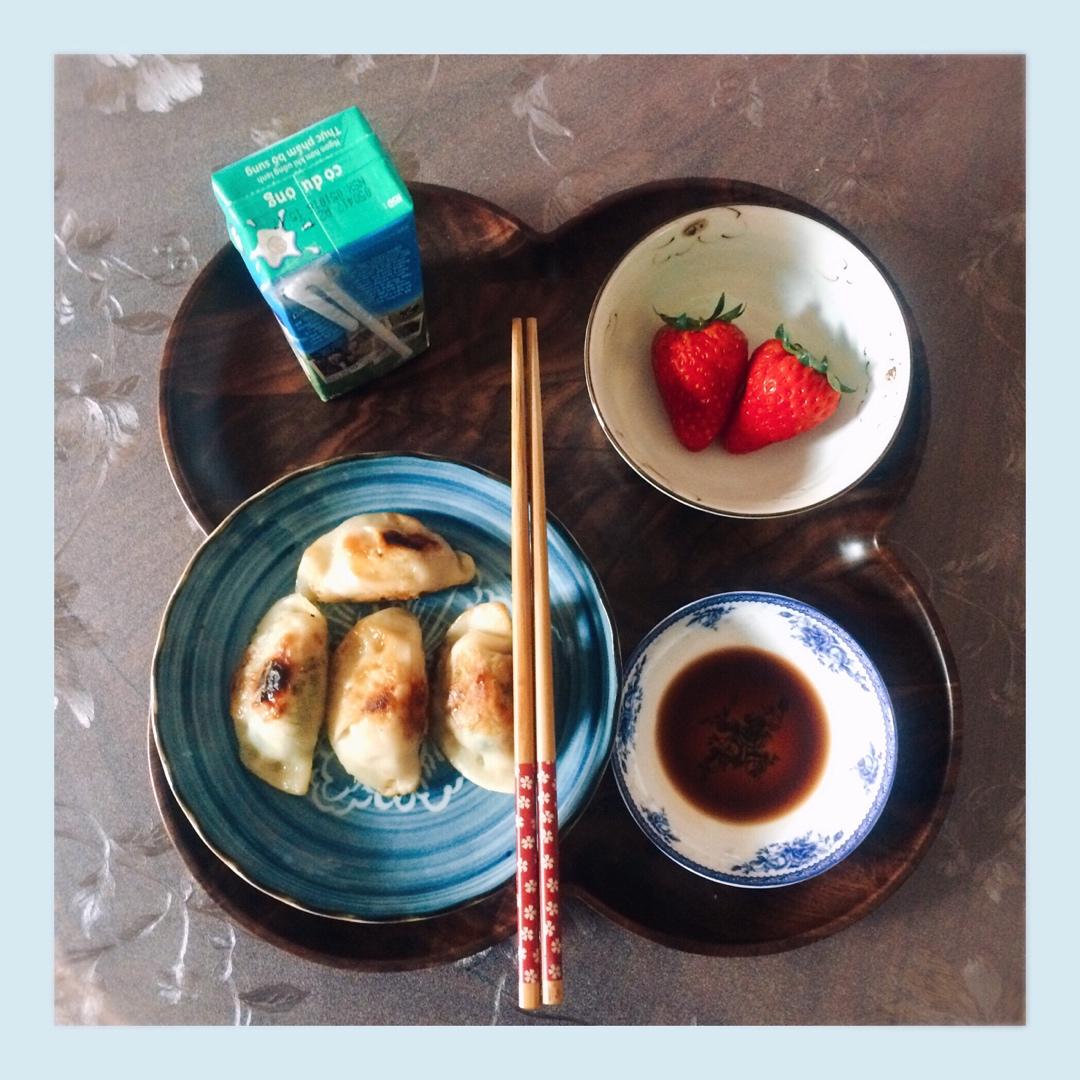 于是小火香煎了四个饺子 点了一点味啉