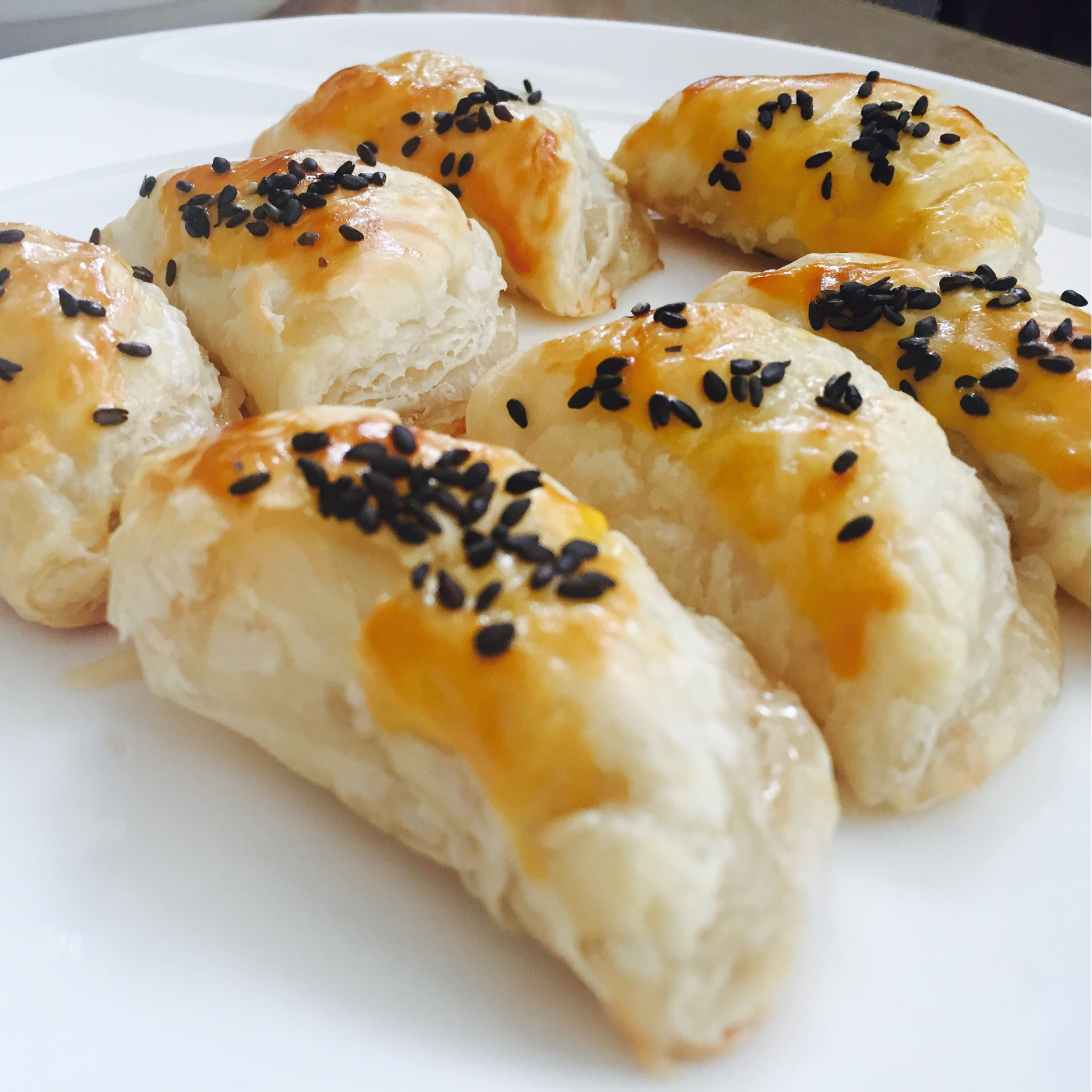 第一次尝试,借鉴榴莲酥原理,试着做香蕉酥,同样好吃又美味