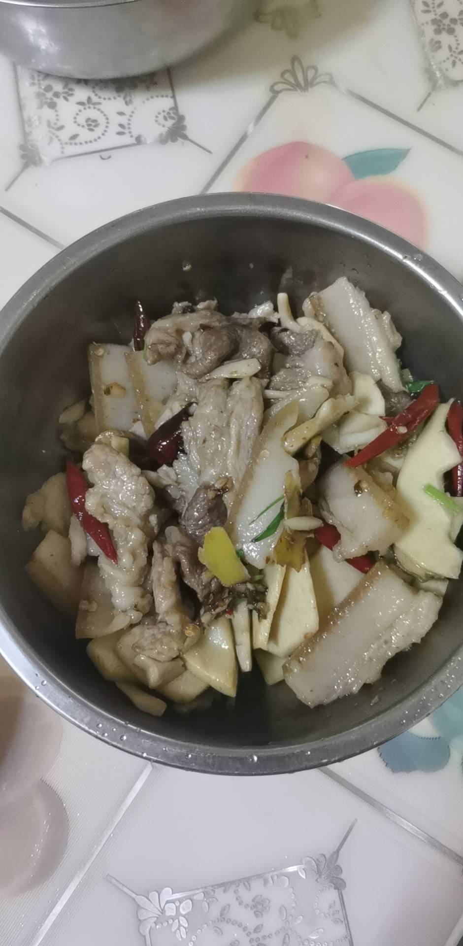 按着姥姥的菜谱做的,虽然没有放笋,也懒得去买青椒,但是味道真好。