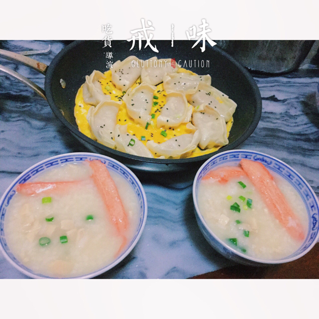煎饺抱蛋 鲍鱼粥