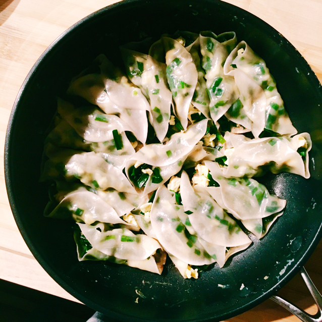 没有柔,就改做韭菜鸡蛋馅儿的啦。第一次做锅贴,终于明白了锅贴与煎饺的区别