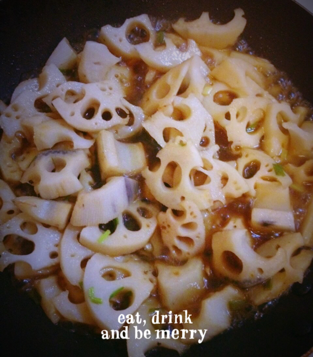完全自己做成的糖醋藕丁 先绰水放酱汁收汁比生炒好多了 还有一点番茄酱 赞的