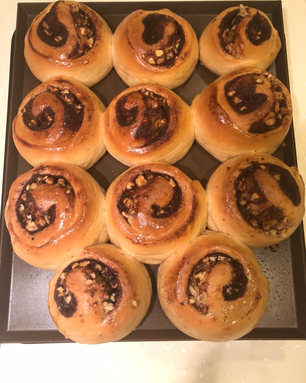 大半夜的一时兴起,终于拔了草做了一回肉桂包。啊呜的方子👍比例很准,步骤介绍也说的特别清楚,我只把红糖换成了升糖指数低很多...