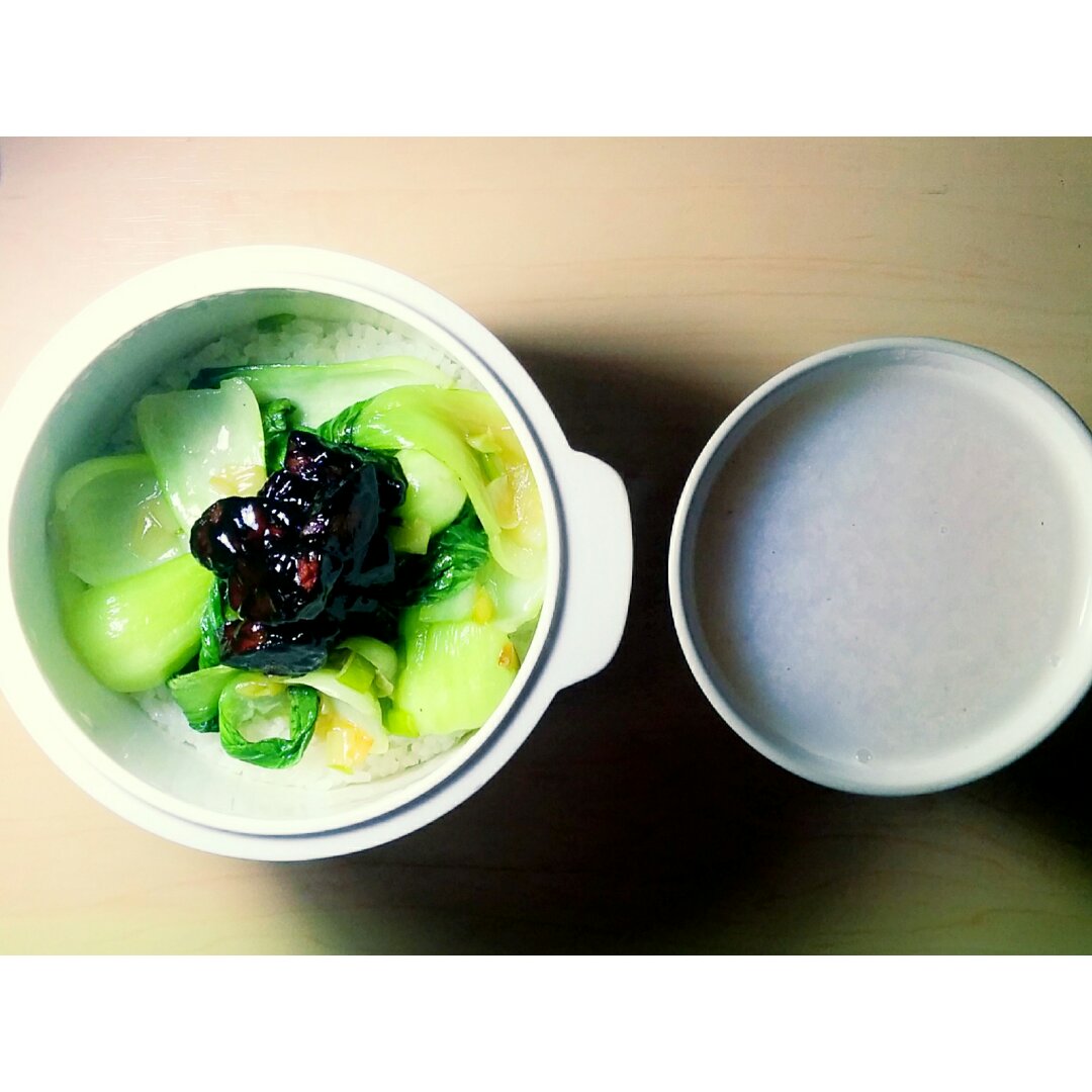 酱香煎鸡小胸+清炒油菜+蒸米饭+山药薏米芡实粥(豆浆机版)