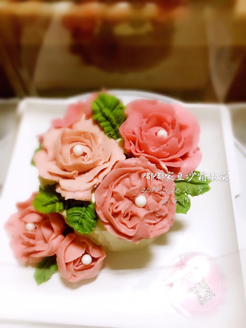 祝大家七夕快乐~~第一次裱花~裱了一个晚上😂😂……虽然纹路不清晰,花瓣不规则……但我已经很满足了😍😍 #早餐•2017年...