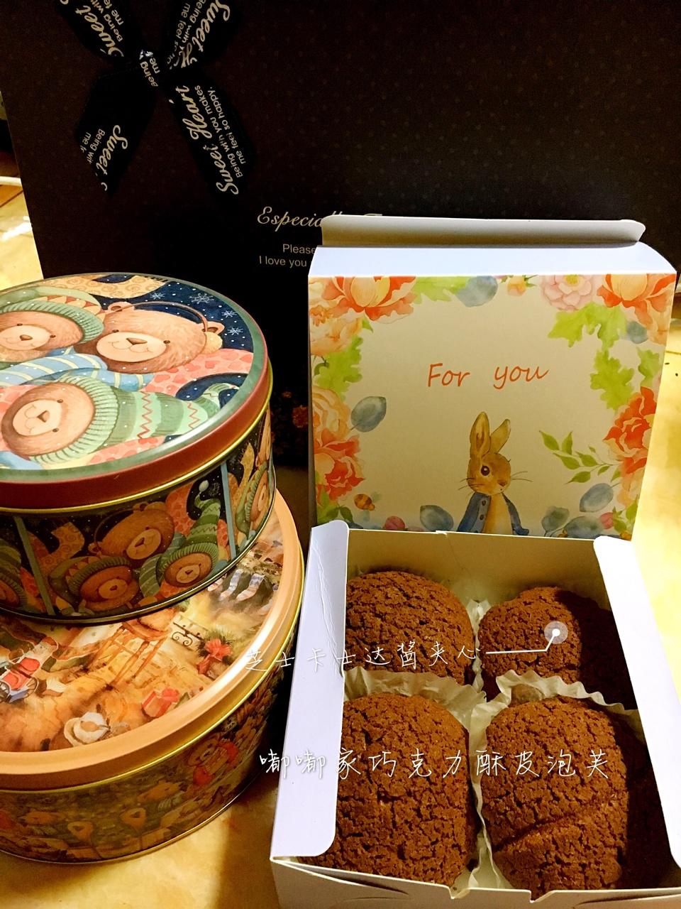 巧克力酥皮泡芙~好吃!第一次做,就是自己盐放多了点……酱还是香草豆荚卡士达酱好!