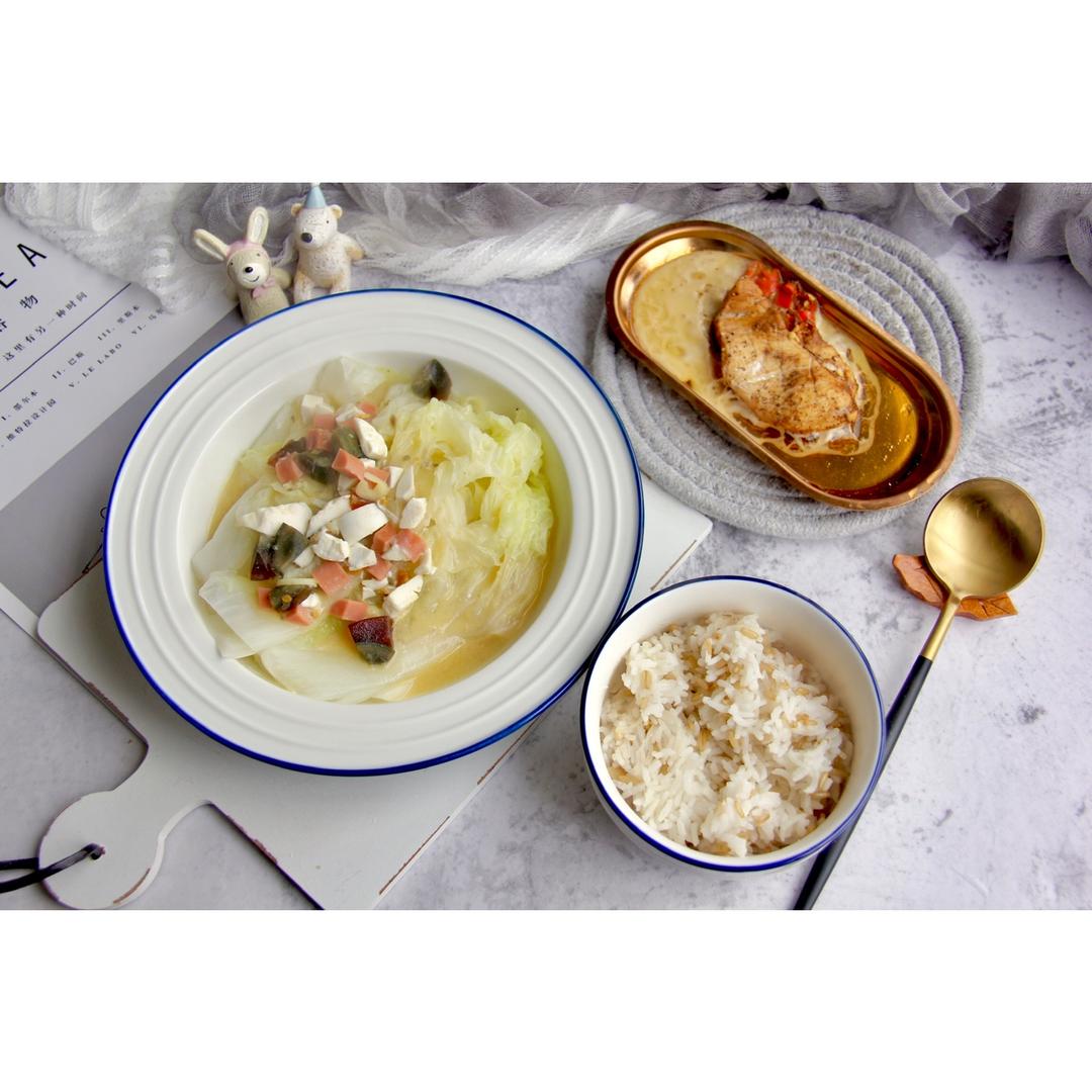 今日午食:上汤白菜➕蒸酸辣鸡胸➕燕麦米饭