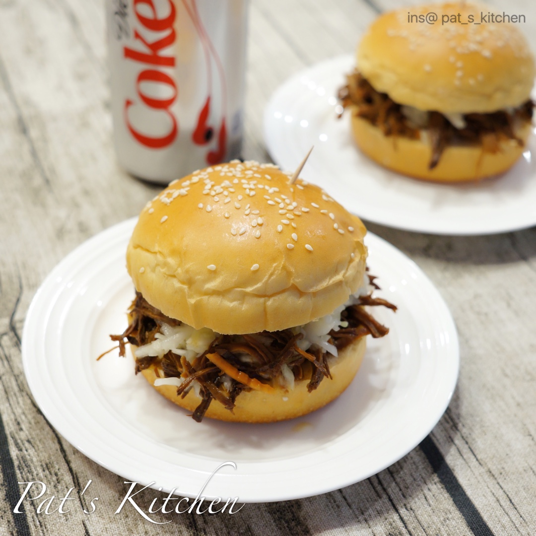自制的pulled pork加自制的汉堡胚做的pulled pork burger! 其实我想说,这不就是西方版的肉夹馍...