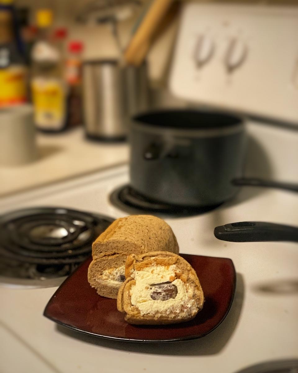 又是一个蛋白稍微打发过度烤箱温度过高的开裂戚风蛋糕卷233333罢了罢了好吃就好23333藏栗子系列的最后一期了吧糖渍栗...