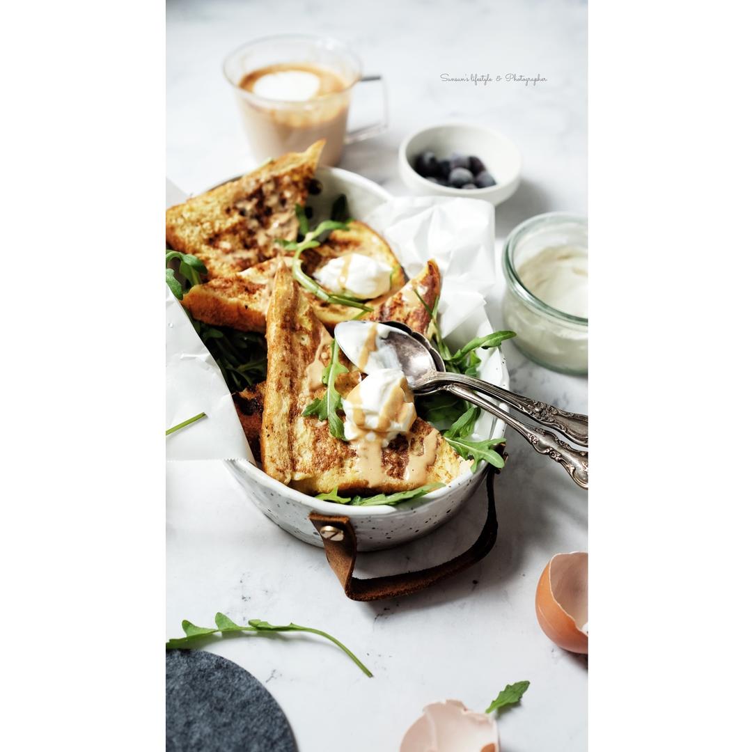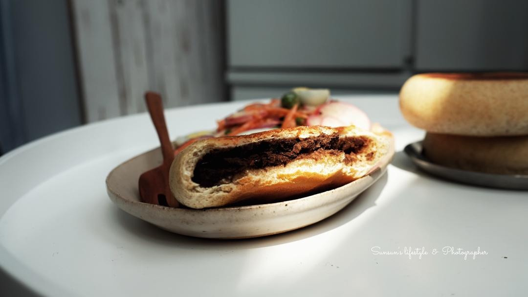 nice!反转贝果!复烤后贝果切开,反转再做帕尼尼,没有帕尼尼🐔如我就用条纹锅干烤,用平铲借力按压。两面都是脆脆的。#早...