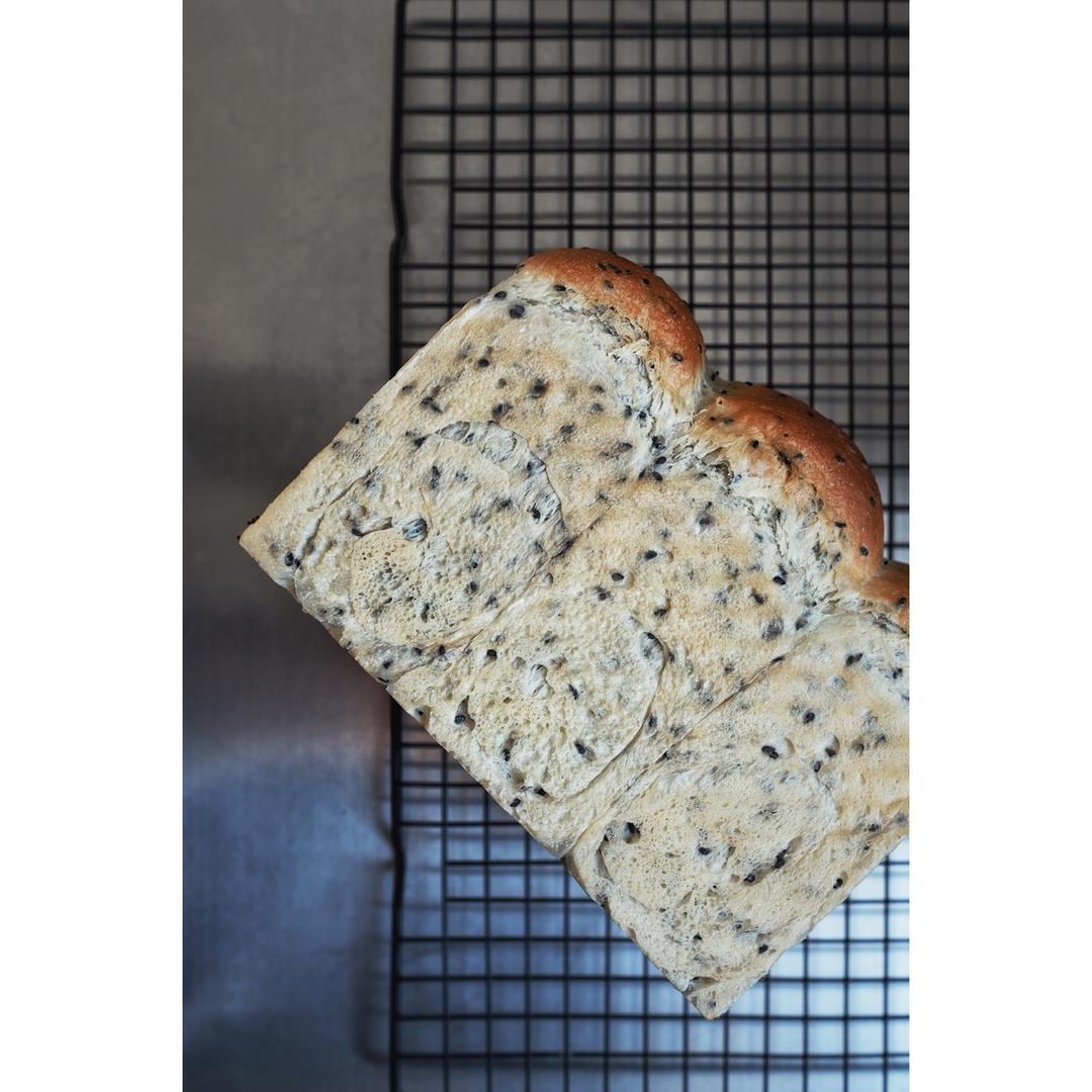 No.106【黑芝麻吐司】好Q不过手抖水多很容易粘,容易破坏组织,下次按照原方加水吧。擀卷手粉要加足,不然粘板#早餐•2...