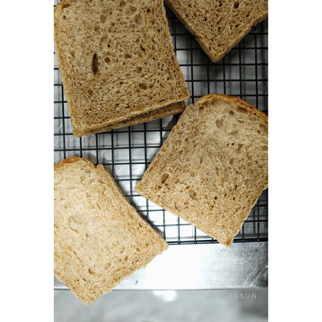 用的天然酵母没有做老面,老面部分换算水和粉,整个吐司全麦能达到46%🤣🤣真是天然酵母酸包了吧,健康的颤抖……水量76%还...