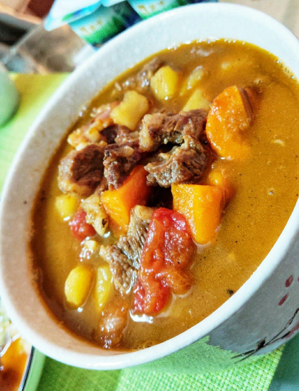 好吃好吃,牛腩切小一点,拿电压力锅炖了半小时,然后炒过胡萝卜洋葱番茄,导入土豆,然后再炖十分钟。