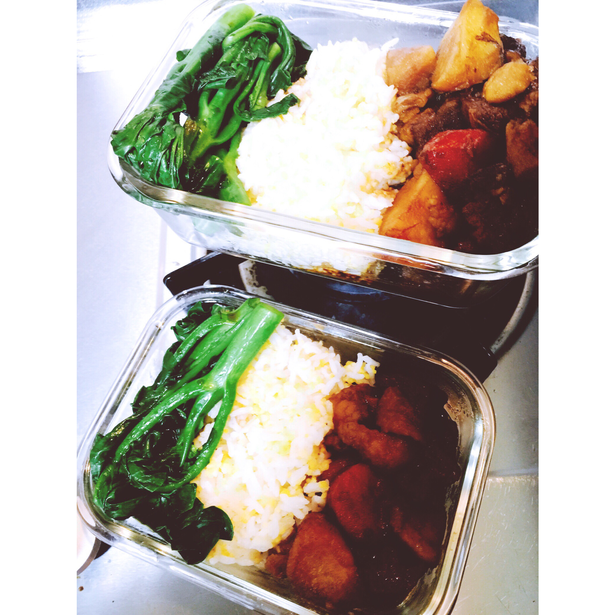 今天午餐:土豆牛腩+白灼芥蓝
