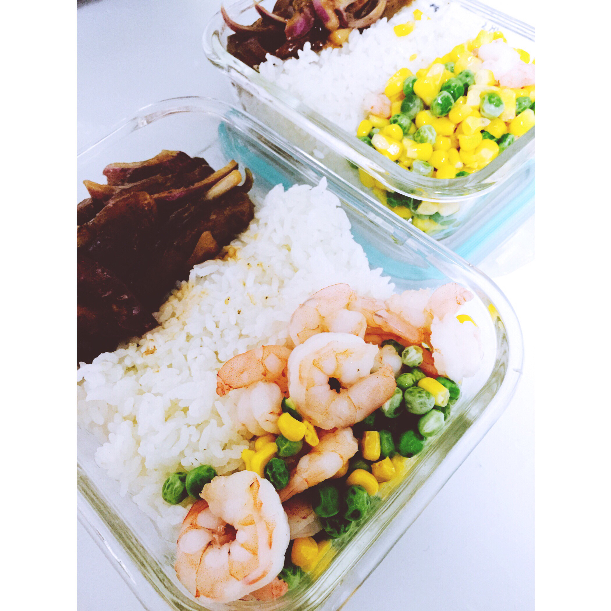 洋葱牛排+豌豆玉米粒虾仁