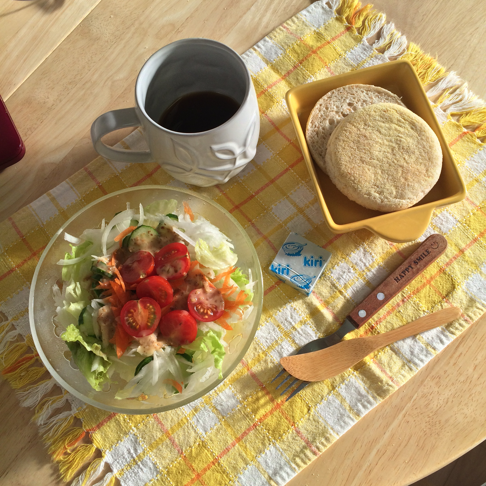 【胡麻蔬菜沙拉+烤松饼配kiri酸奶奶酪】