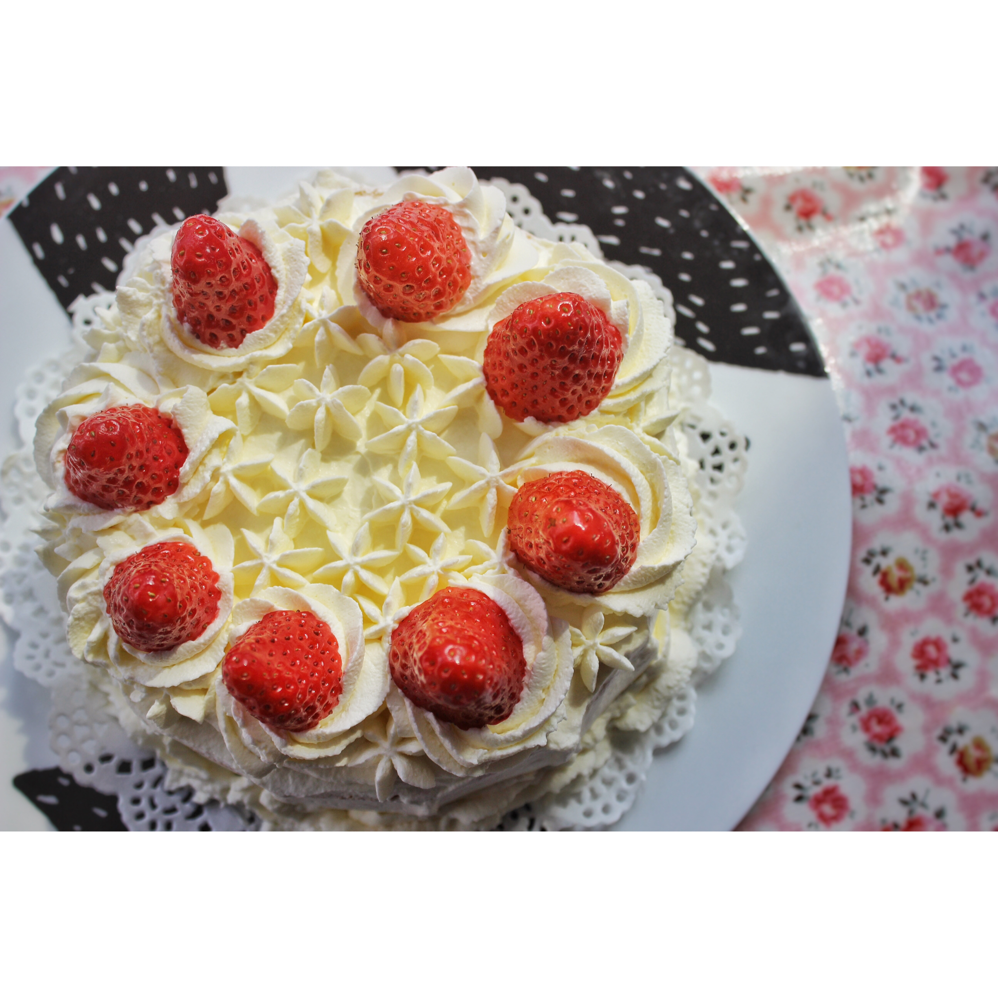 嗯,先来一发。本来也是要做个简易装饰的,结果奶油太粗糙...改了又改就变成了如此接地气儿的一款草莓蛋糕😄 #晚餐•201...