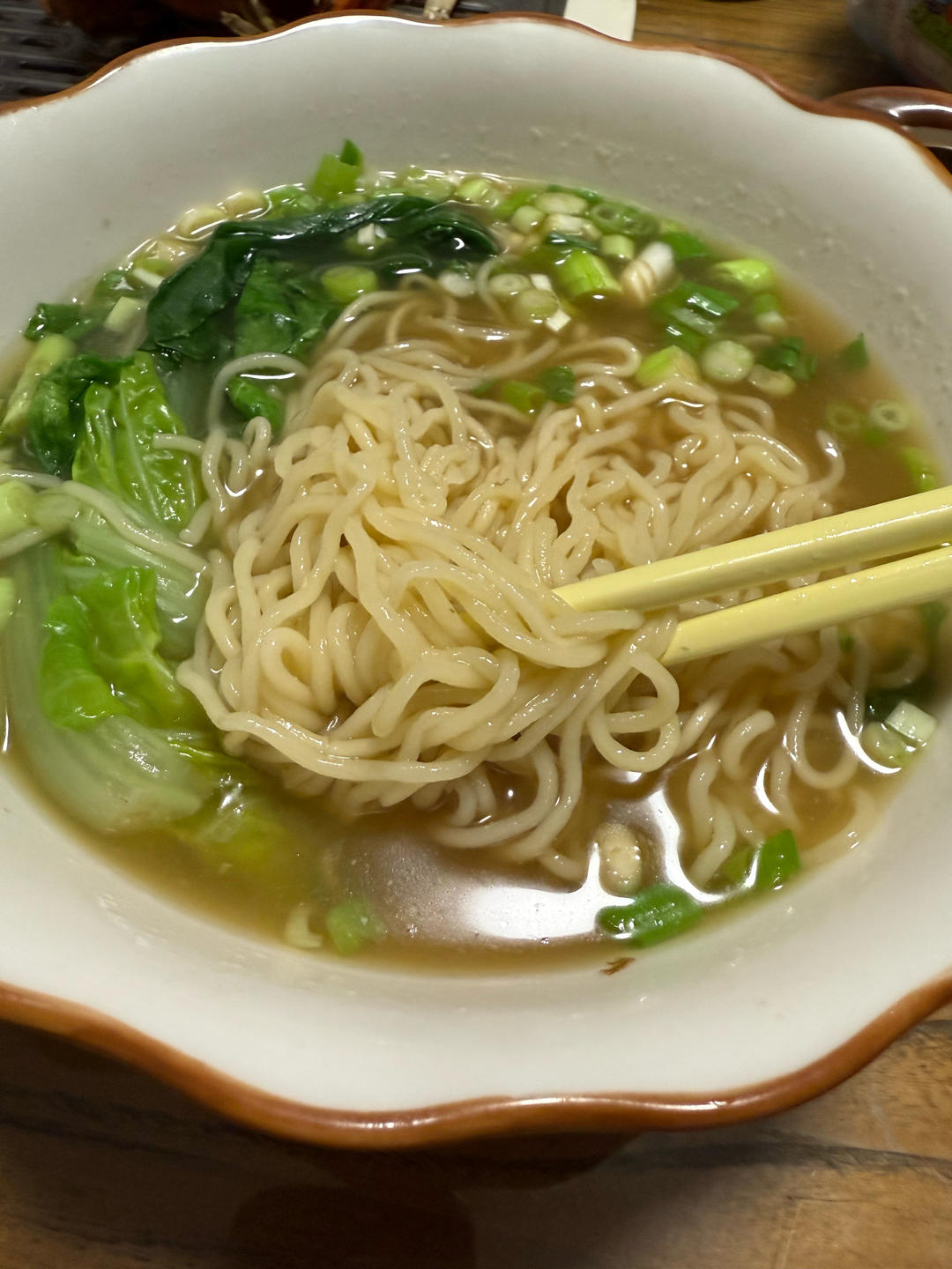早上香菇肥牛小白菜放一起下点生抽煮个面,鲜到家了