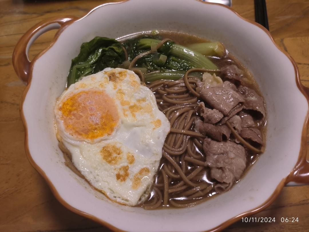 下碗荞麦面,放上两片肥牛,有营养还好吃