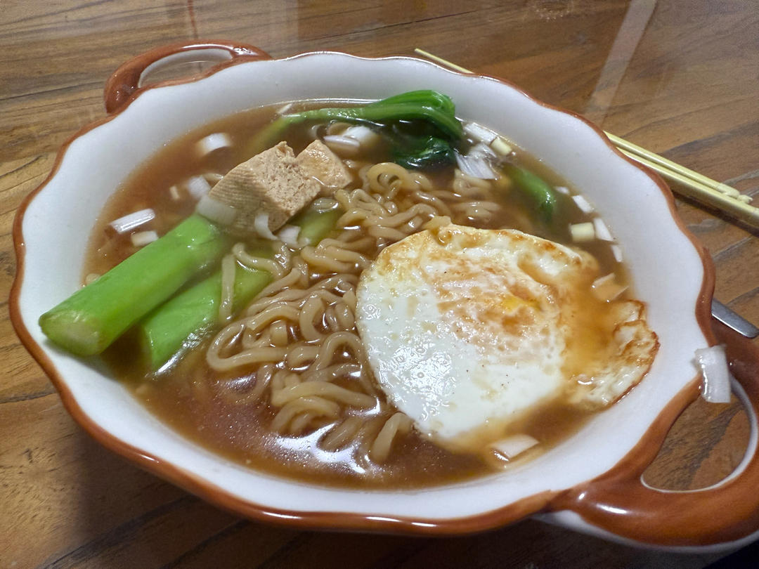 炝锅面条里面煮点豆腐,在煎个鸡蛋,营养美味