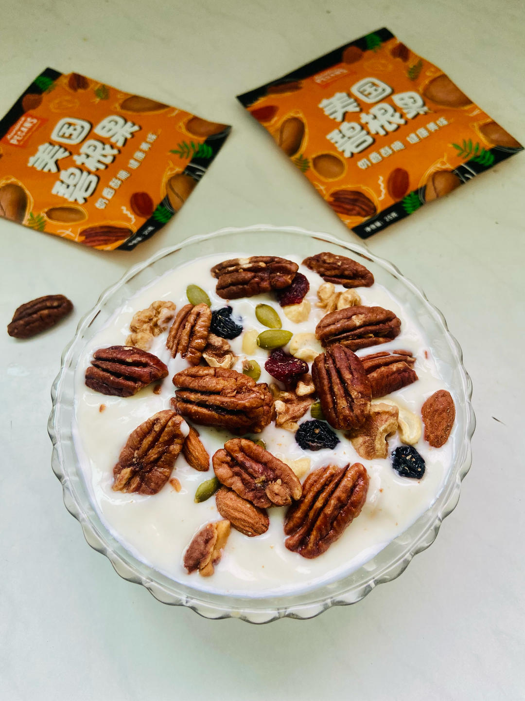 炎热的夏季来一碗碧根果酸奶沙拉,营养丰富,健康又美味😋亲爱的@