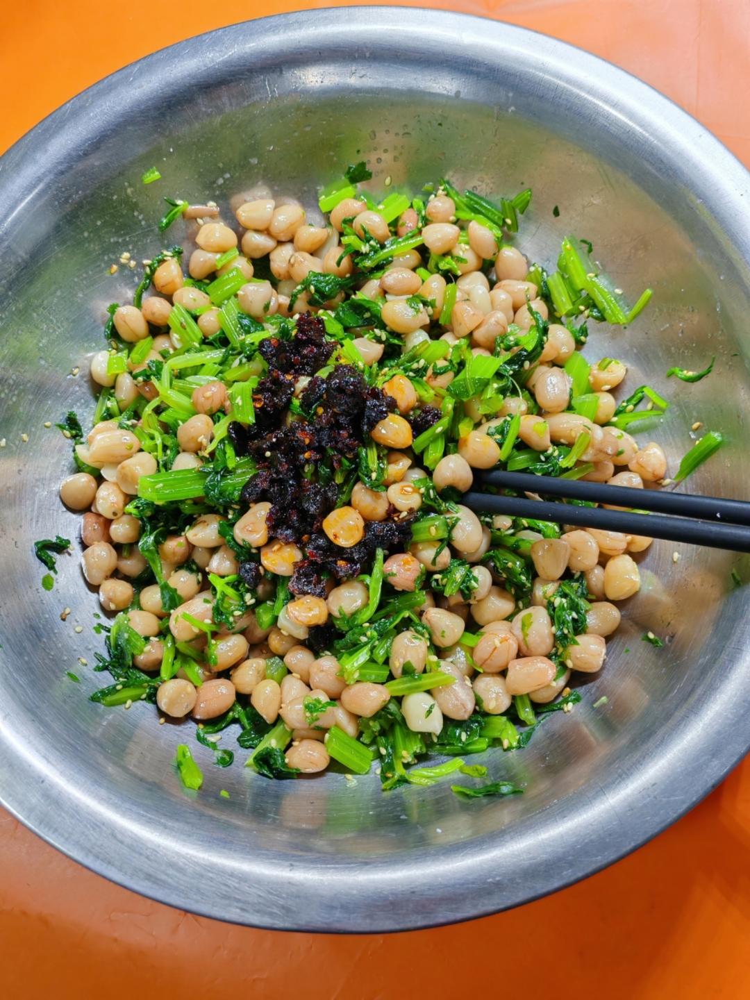 晚餐:东北风 之 芹菜拌花生米🥜。