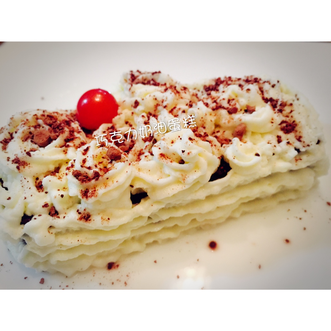 半年才动一次手的老公终于给我们做了巧克力奶油蛋糕咯😀