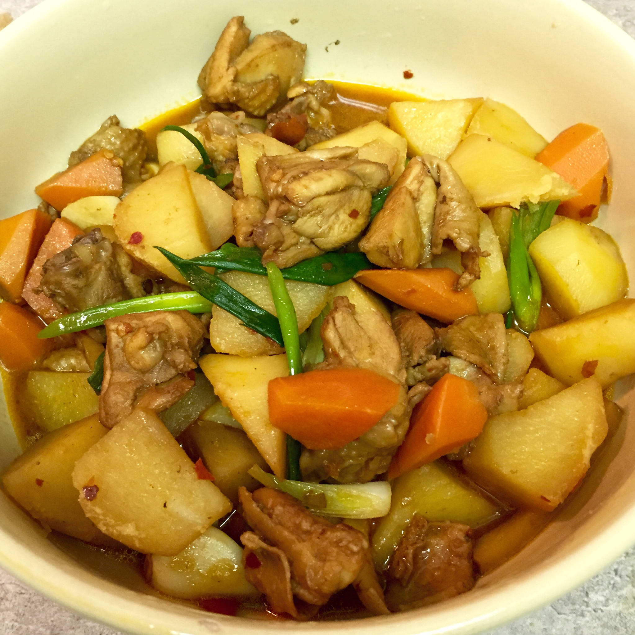 偷学姥姥的土豆鸡~ 我还加了一根胡萝卜~ 汁儿拌米饭好吃无敌~