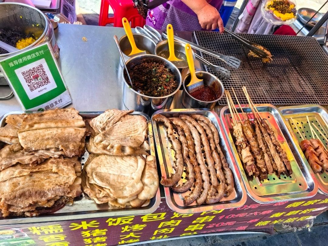 三色糯米饭团,糯米很弹牙,这里的糯米真好吃。各种小吃都是油腻腻的
