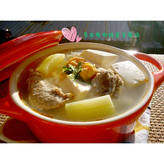 #节瓜瘦肉咸蛋豆腐汤#