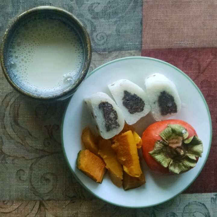 年糕南瓜柿子豆浆。自制中国特色早餐。😁